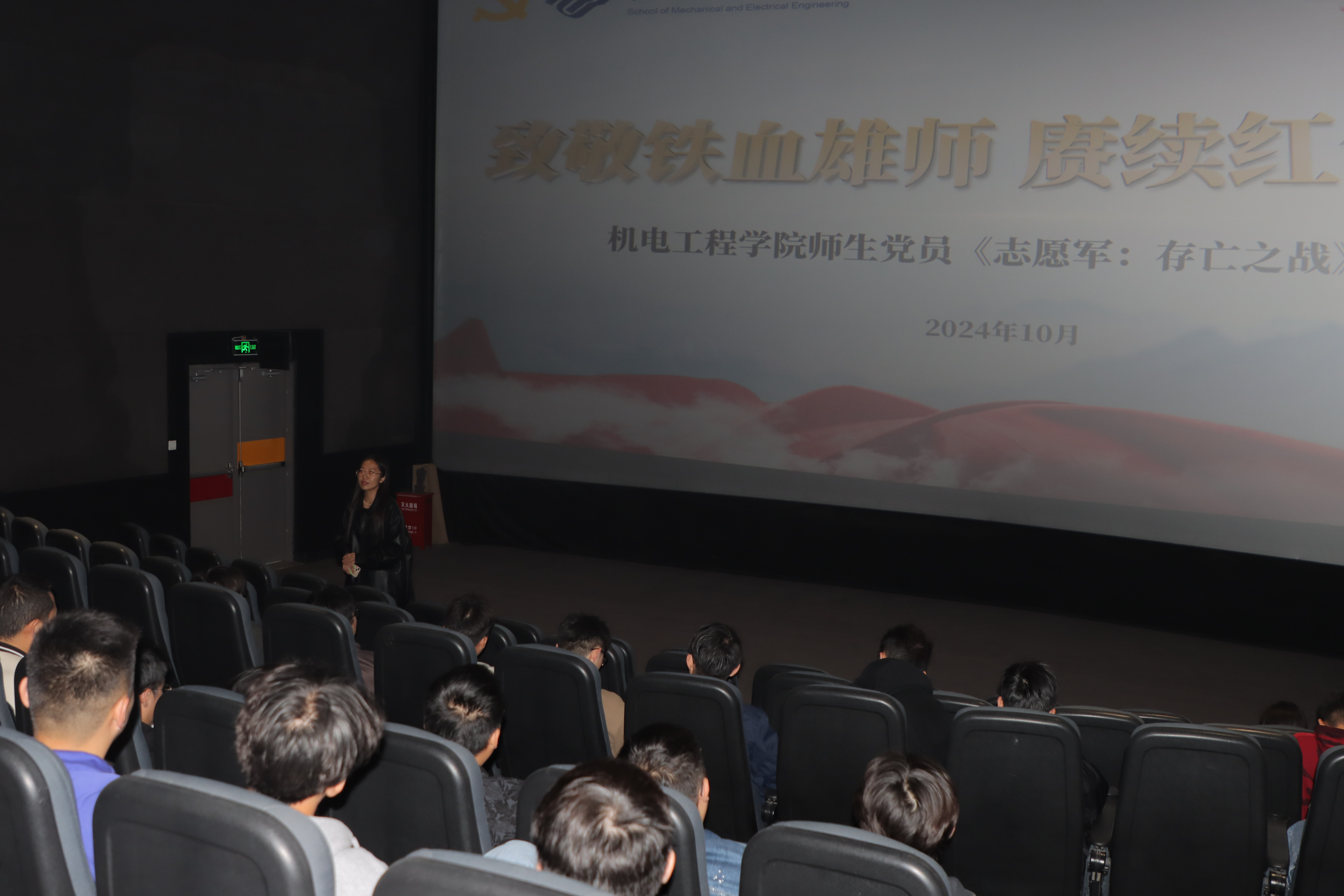 为了进一步激发学生党员的爱国情怀,传承并弘扬抗美援朝精神,强化新时代青年的爱国主义教育,10月30日下午,黑料网 党委组织学院本科、研究生全体党员,于壹方城影院观看红色革命电影《志愿军:存亡之战》。本次活动由黑料网 学生党建工作指导老师、本科2022级辅导员梁佳卉主持。