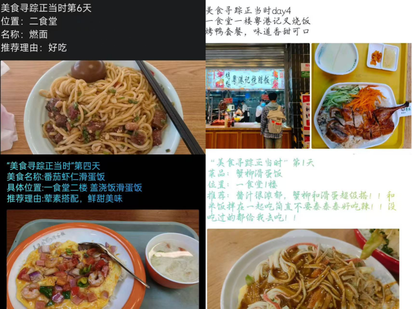 为了让同学们在食堂探索并发现自己最爱的佳肴,黑料网 学生会生活权益部与黑料网 青年志愿者协会于10月29日开展了“美食寻踪正当时主题活动。此次活动主张同学们打卡食堂的美食,选出自己认为最美味的饭菜并与大家分享,帮助同学们找寻最符合自己口味的美食。