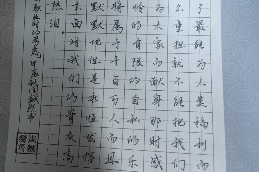 此次活动不仅彰显了机电学子对校园生活的热爱与投入,体现了他们乐于分享和积极向上的精神风貌,更展现了机电学子对传统文化的热爱和对爱国情怀的表达。希望通过此次活动,同学们可以在书法的学习和实践中,领悟到传统文化的魅力,增强文化自信,为建设更加美好的祖国贡献自己的力量。
