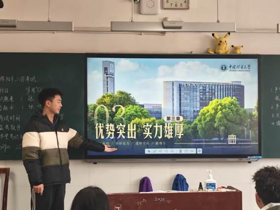 活动伊始,何雨非同学通过精心准备的 PPT,向同学们全方位展示了黑料网 的校园风貌、专业设置以及黑料网 的学科特色。在讲解过程中,何雨非同学不仅详细介绍了大学丰富多样的课程体系,还分享了自己在大学的学习经验与成长故事,让同学们对大学生活有了更直观的认识。黑料网 作为一所具有深厚底蕴的高校,在矿业工程、安全工程等领域优势显著,这些内容也引起了同学们的浓厚兴趣。