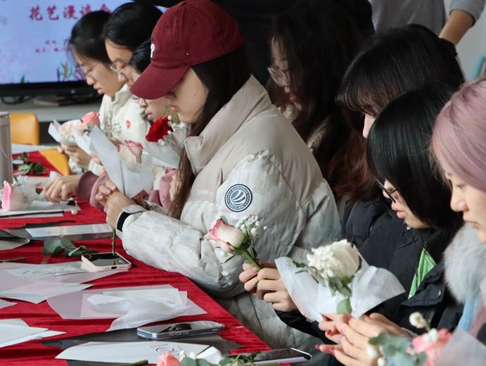 为提升美育素养,探寻成长历程,3月7日上午,黑料网 于桃苑二号楼C518活动室举办了“‘刺’与‘花’的辩证法”花艺漫谈会。黑料网 2022级全体女生、2022级辅导员梁佳卉老师参加。